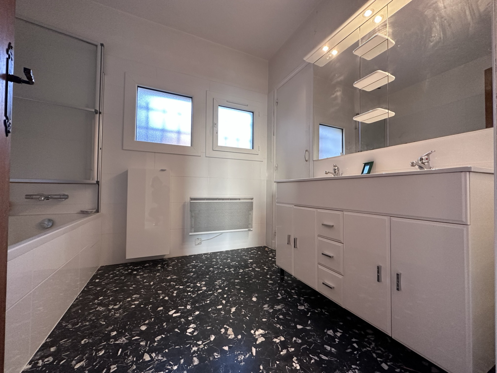 Une cheminée et des radiateurs sont en compléments.