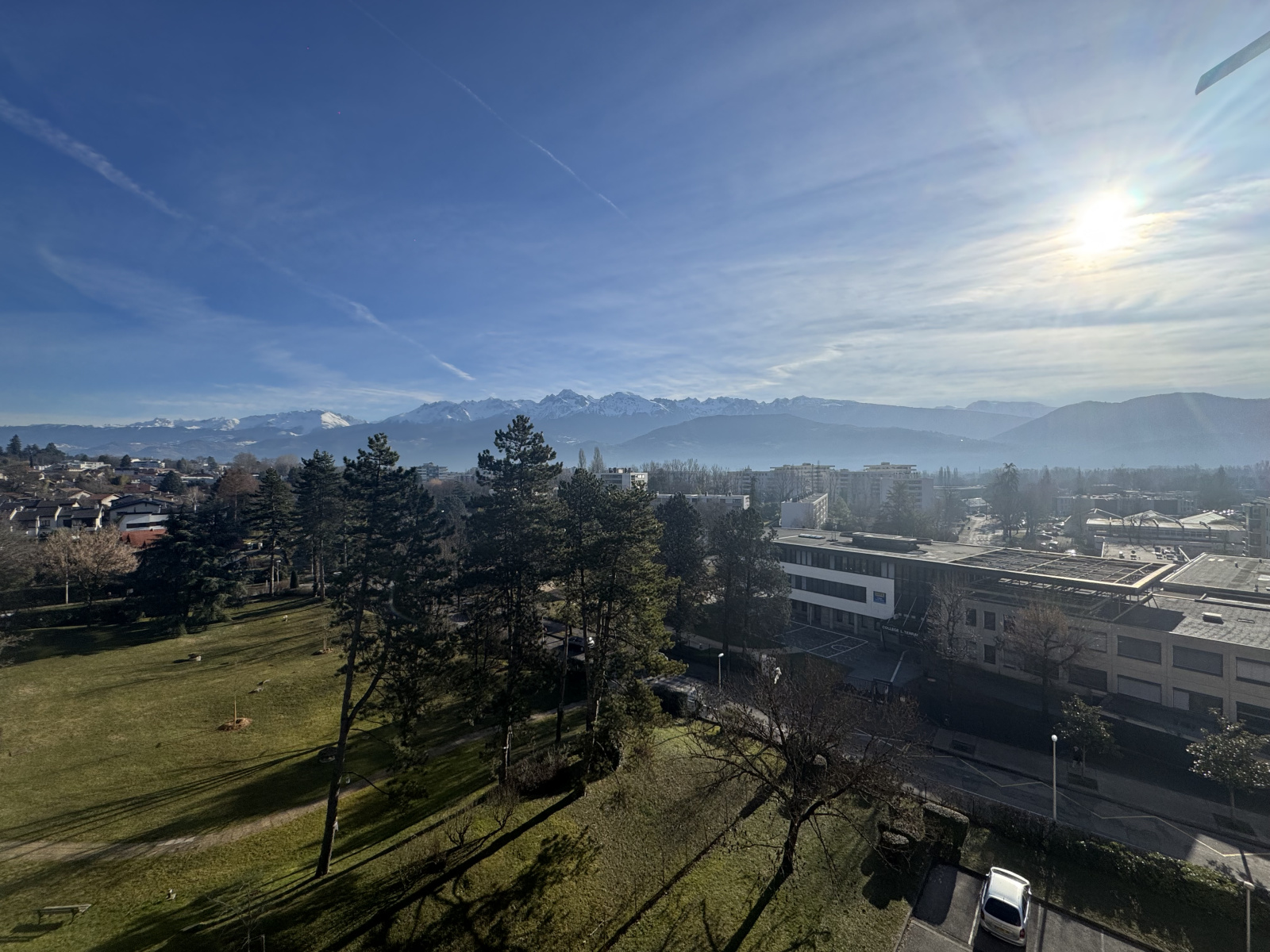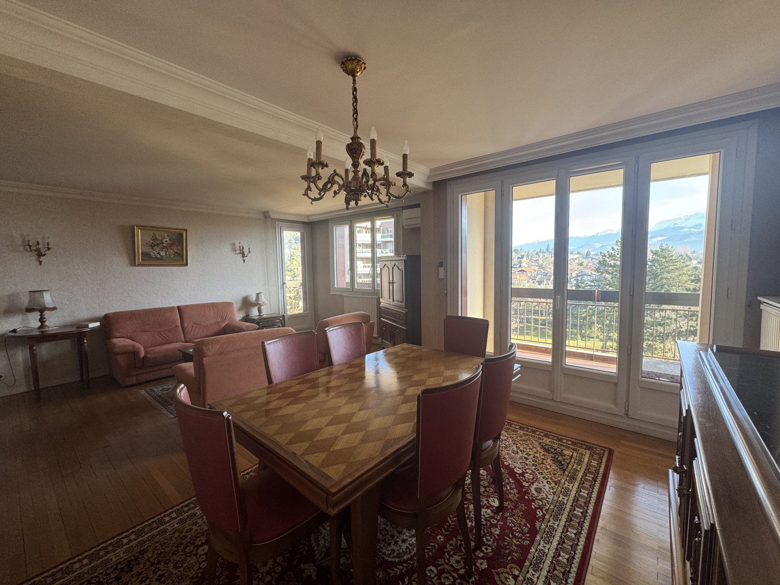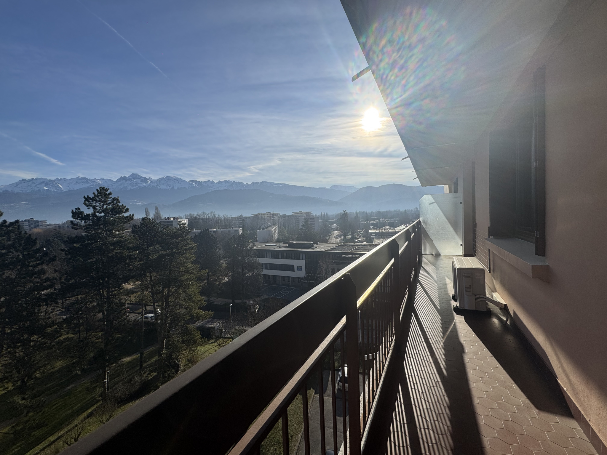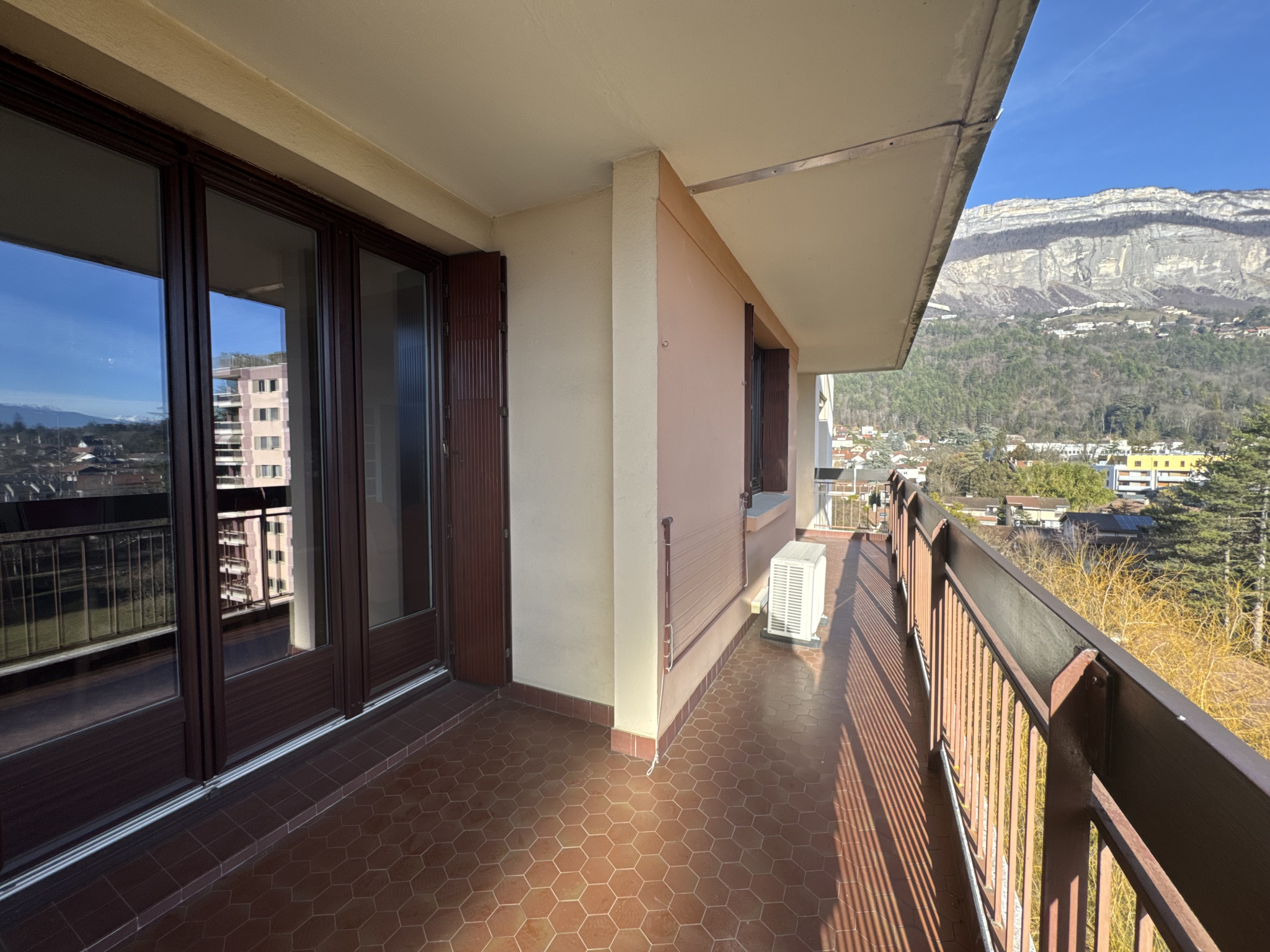 Le séjour et la cuisine sont exposés Sud Est et s'ouvrent sur un balcon + coin terrasse qui offre une très belle vue dégagée sur Belledonne. Les chambres sont exposées Nord avec vue sur la chartreuse.