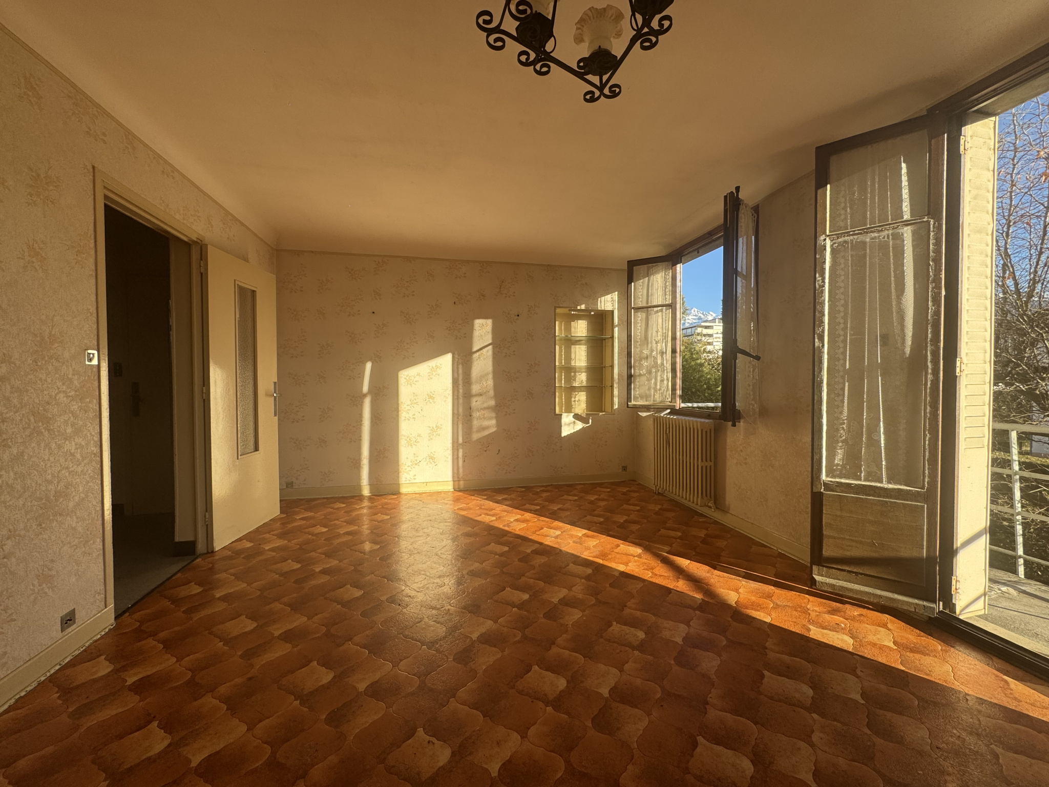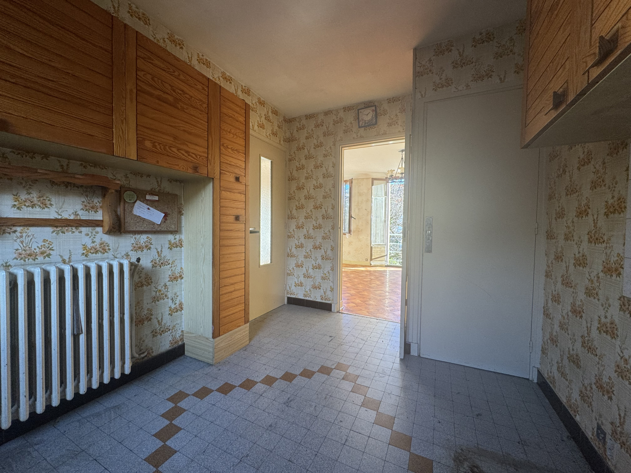 1er étage : 1 séjour s’ouvrant sur un balcon filant commun, cuisine, un dégagement avec rangement puis WC indépendant.