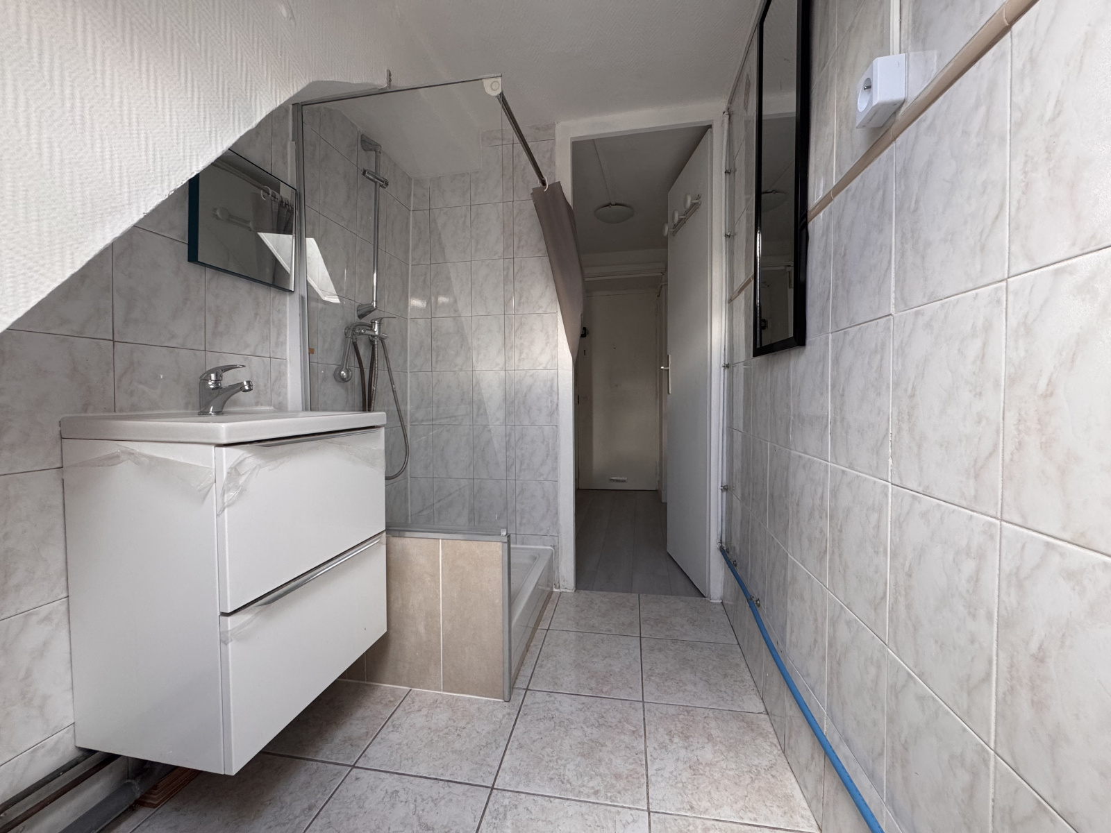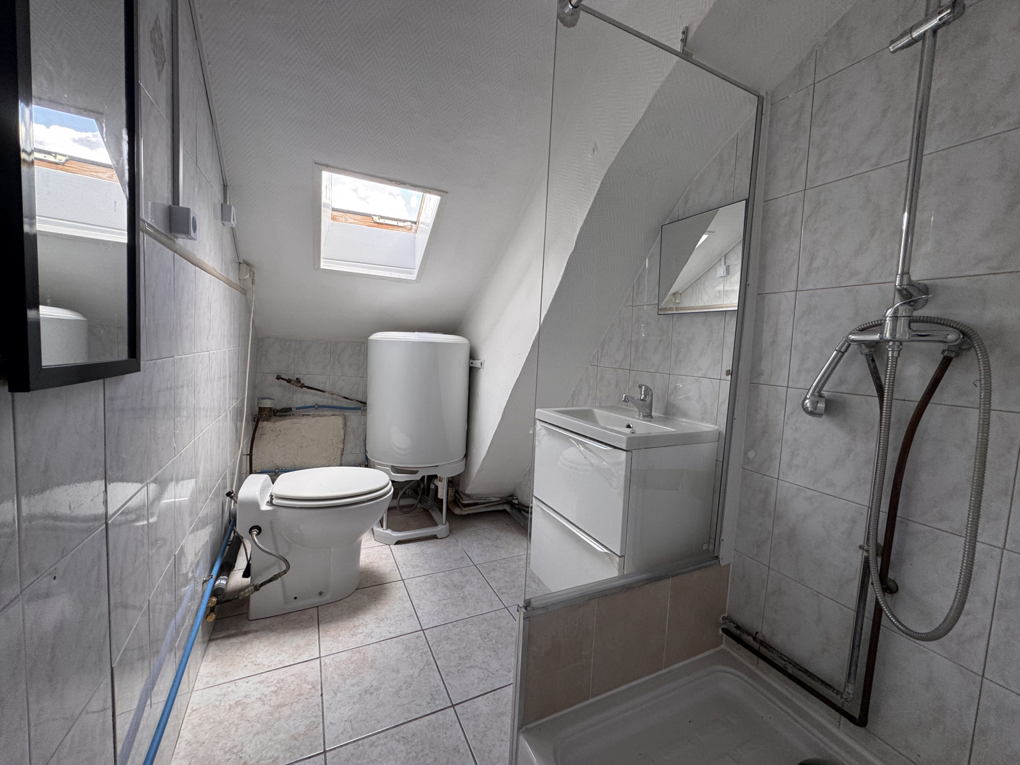 1 grande chambre, une cuisine, 1 SDB avec douche et WC.