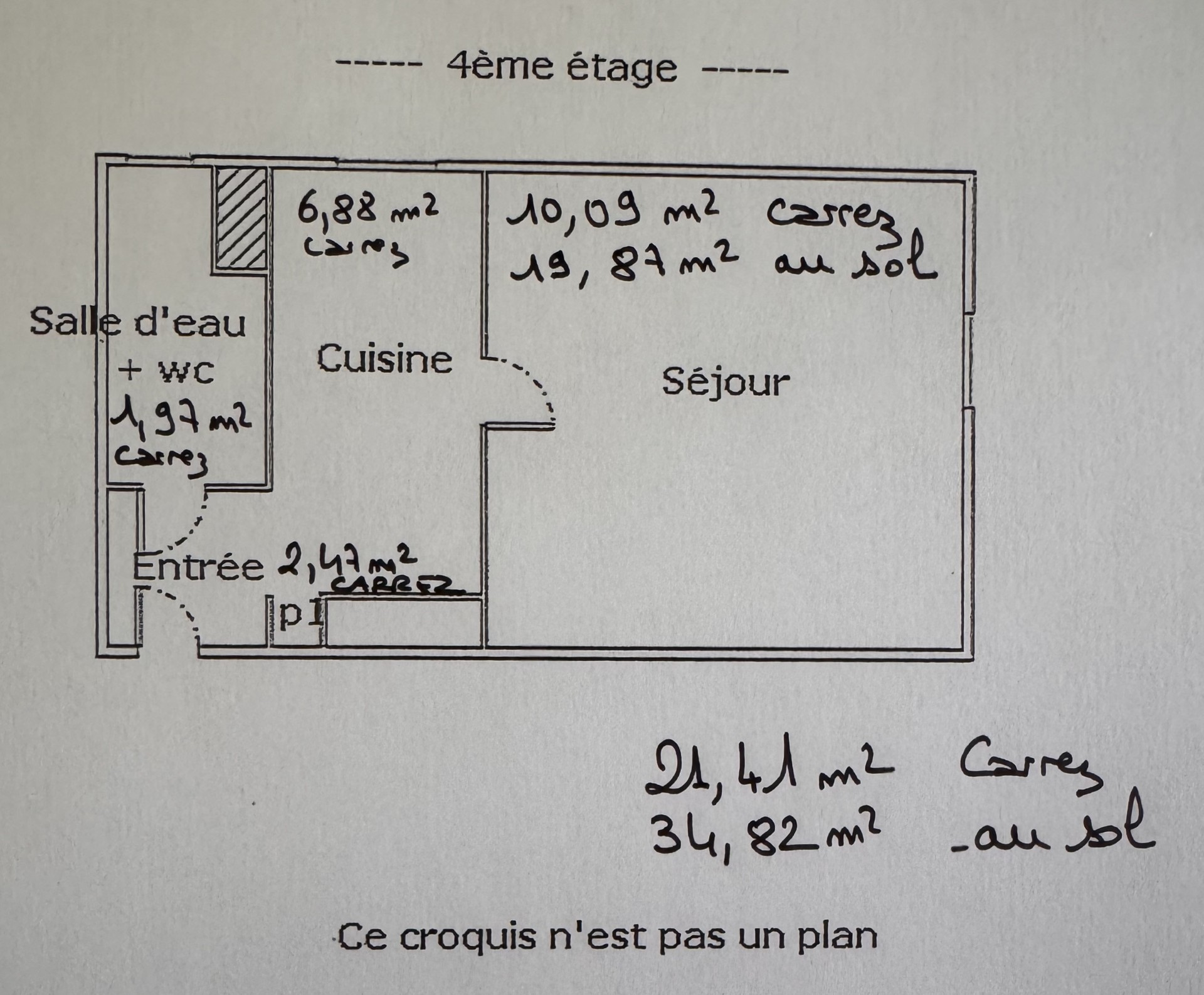 Coste Immobilier vous propose un lumineux T1 au 4ème étage / 4 sans ascenseur de 21.41 m2 (34.82 m2 au sol) rue Abbé Grégoire