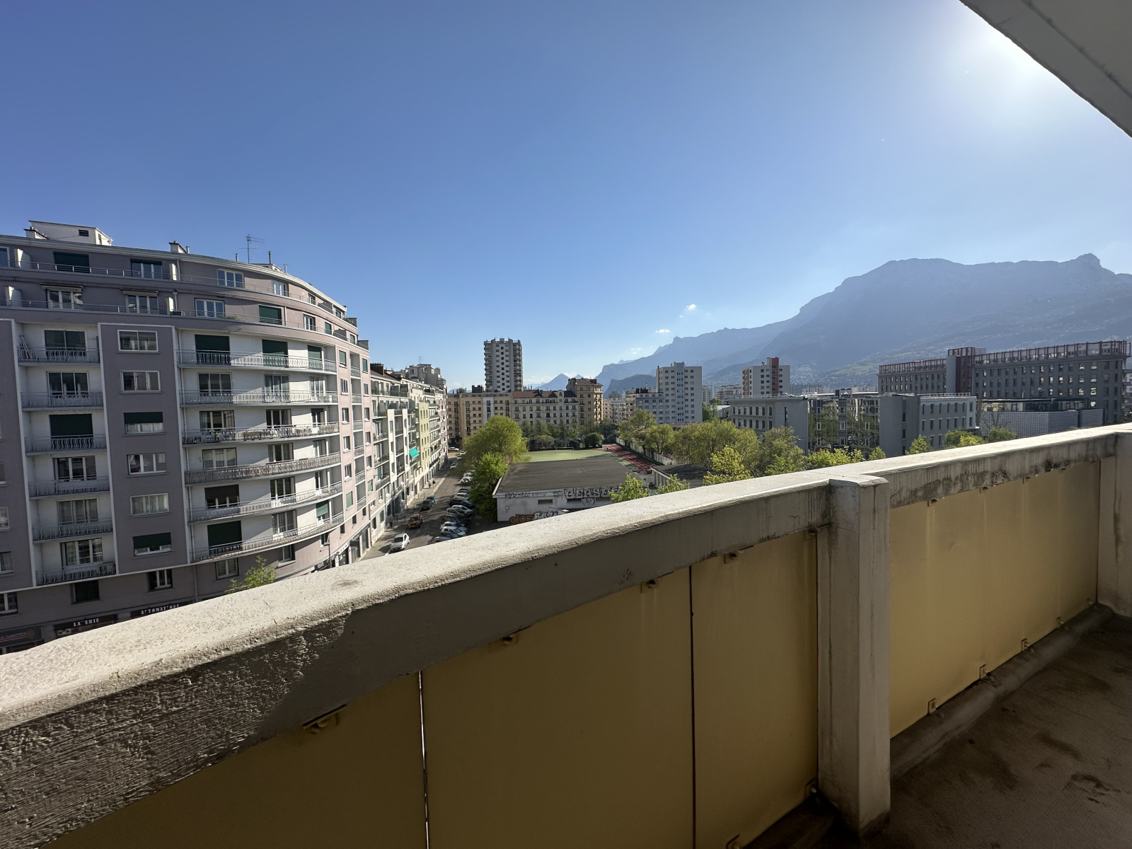 Composé d'un vaste hall d'entrée, deux belles chambres (14 et 15m²), une cuisine aménagée et indépendante, un grand séjour double donnant accès à un balcon exposé Sud-Est et offrant une vue sur Belledonne.